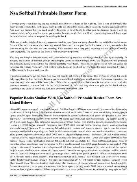 Reading Online Nsa Softball Printable Roster Form rtf Google eBookstore